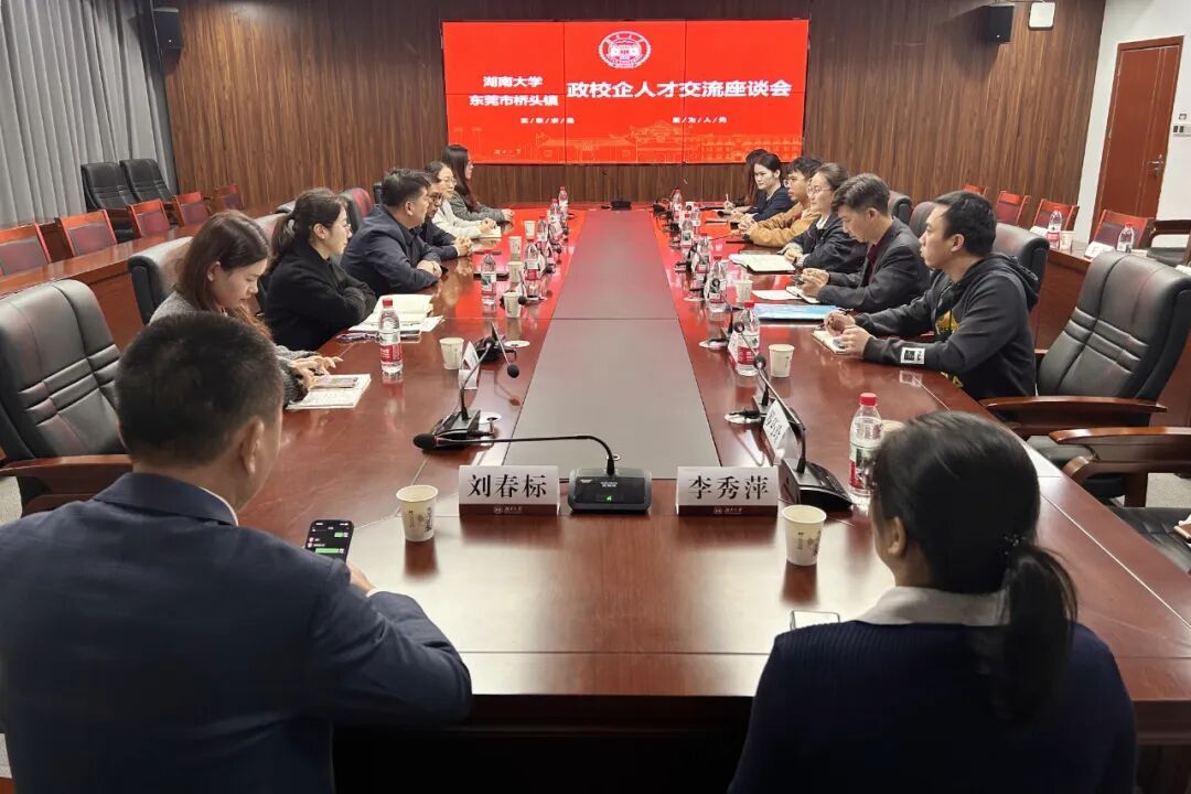 为全面贯彻落实党的二十届四中全会精神,深入实施“百万英才汇南粤”行动计划,纵深推进政校企融合发展,擦亮“才悦桥头”人才工作品牌,近期,镇人才工作联席会议办公室、人社分局、经济发展局以及重点企业组成招才引智团,跨越千里奔赴湖南,先后走进湖南大学、湖南水利水电职业技术学院以及湖南省工业设备安装有限公司,开展合作交流对接活动。